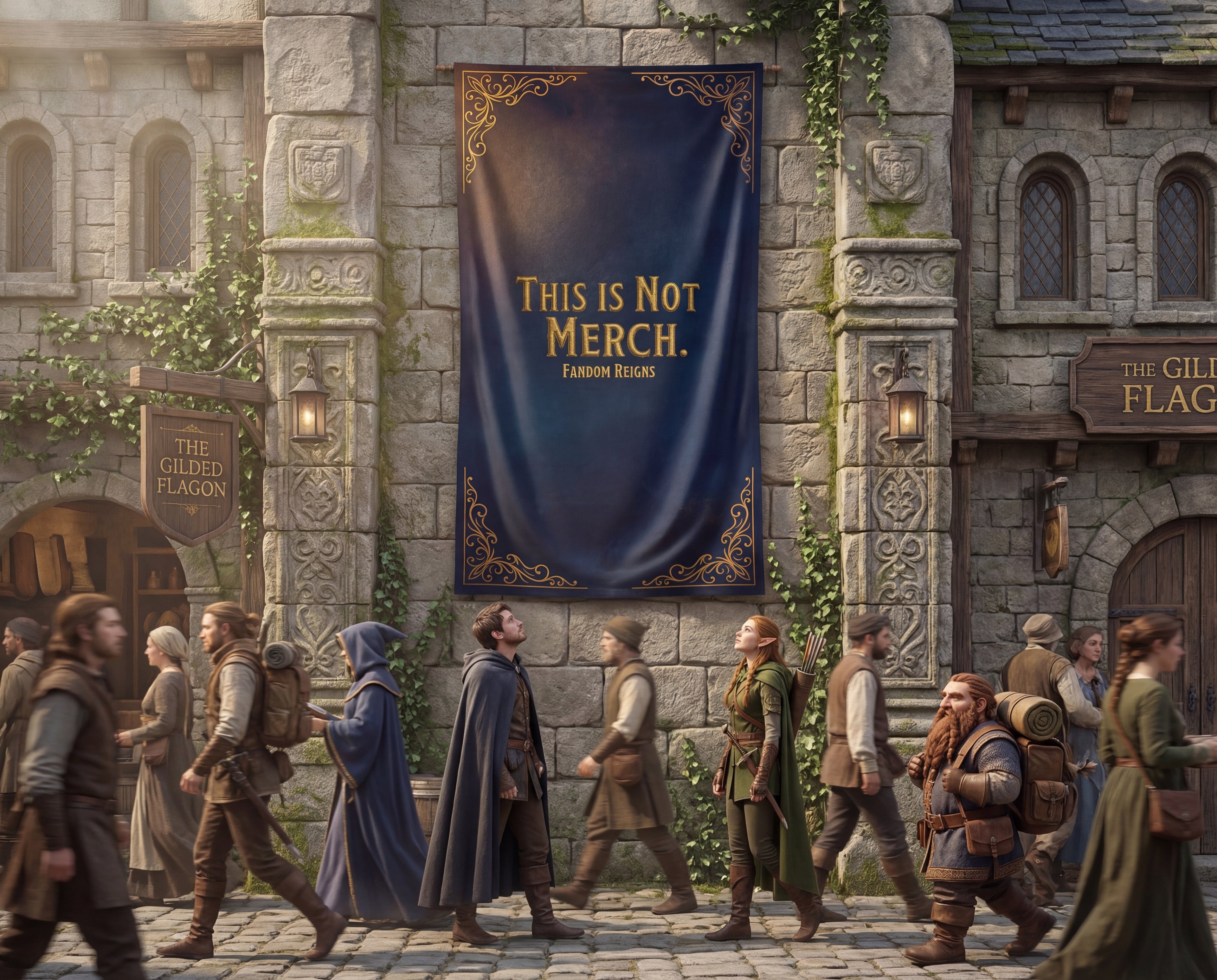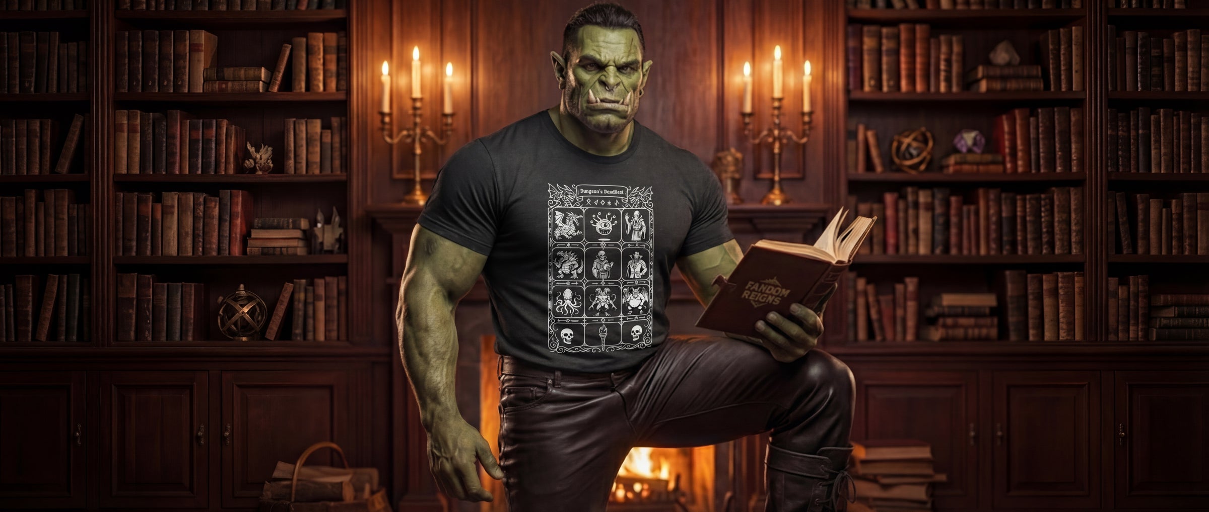 Fandom Reigns was born like many campaigns: around a table, rolling dice, and quoting memes among friends. We saw that D&D and fantasy world fan merchandise was generic, so we founded our own creative guild. Every design you see here is meant to tell a story—yours and your party's—both in and out of the game.
